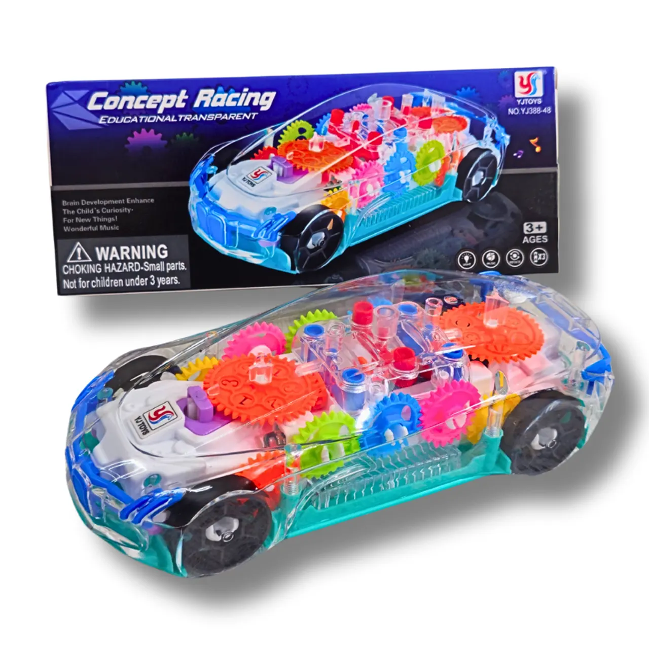 Concept Racing Transparent Car হলো শিশুদের জন্য এক অনন্য শিক্ষা ও বিনোদনের খেলনা। রঙিন গিয়ার, লাইট ও মিউজিক একসাথে শিশুদের আনন্দ দেবে এবং শেখাবে কিভাবে মেশিন কাজ করে।