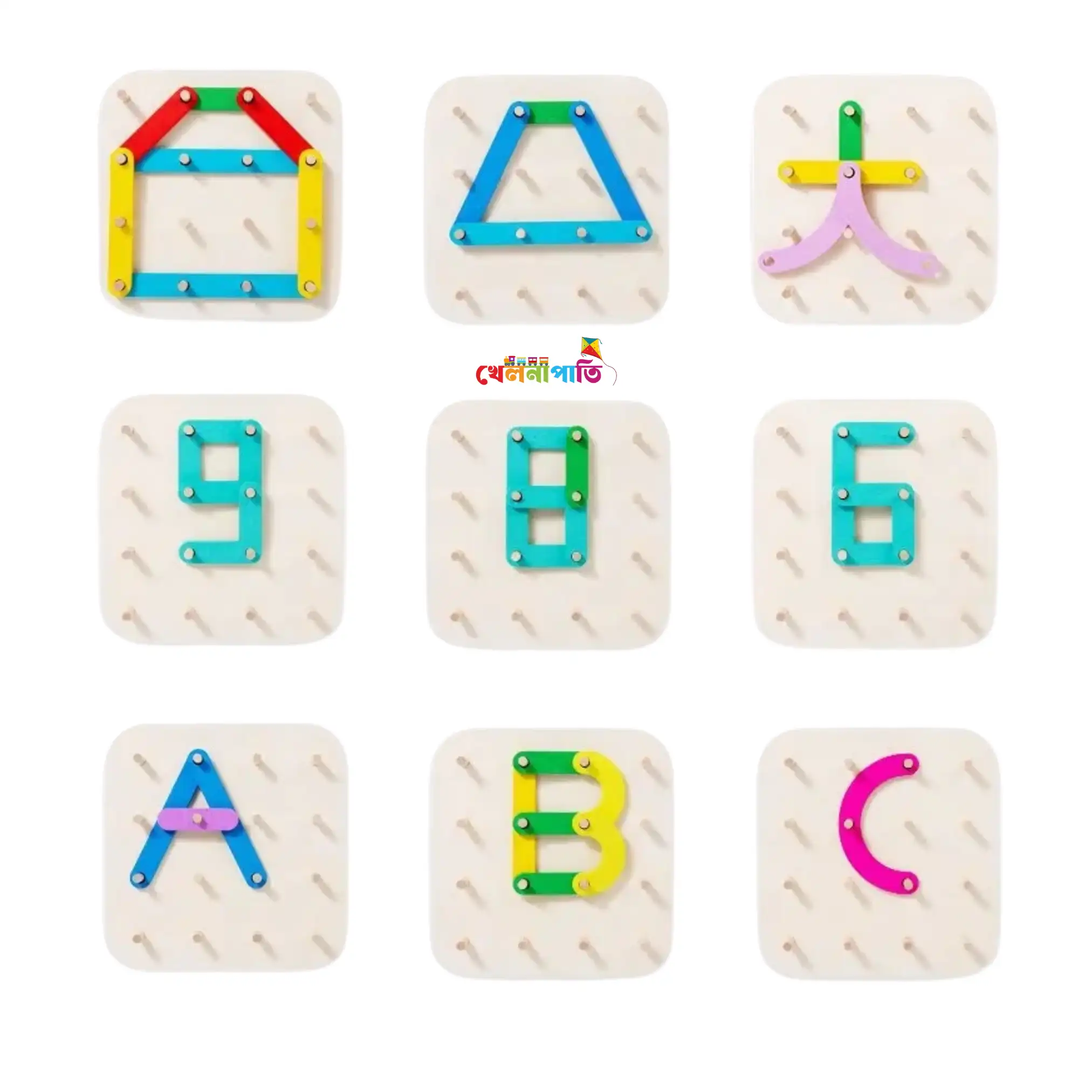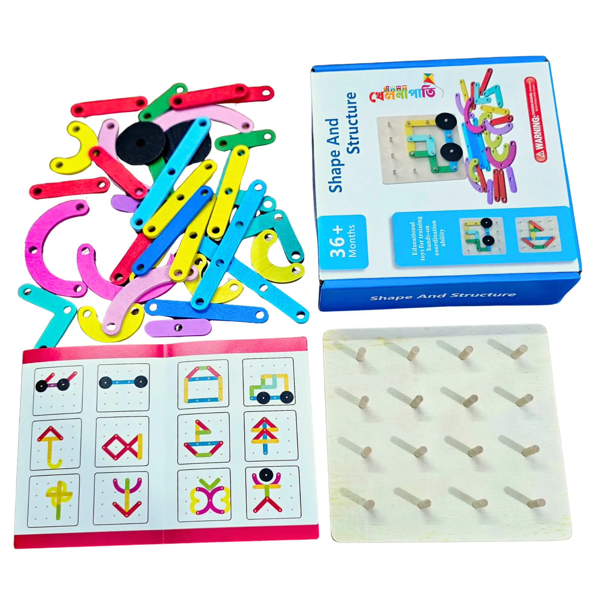 শিশুরা কাঠের পেগগুলোকে সঠিকভাবে সাজিয়ে বিভিন্ন আকৃতি তৈরি করতে পারবে।