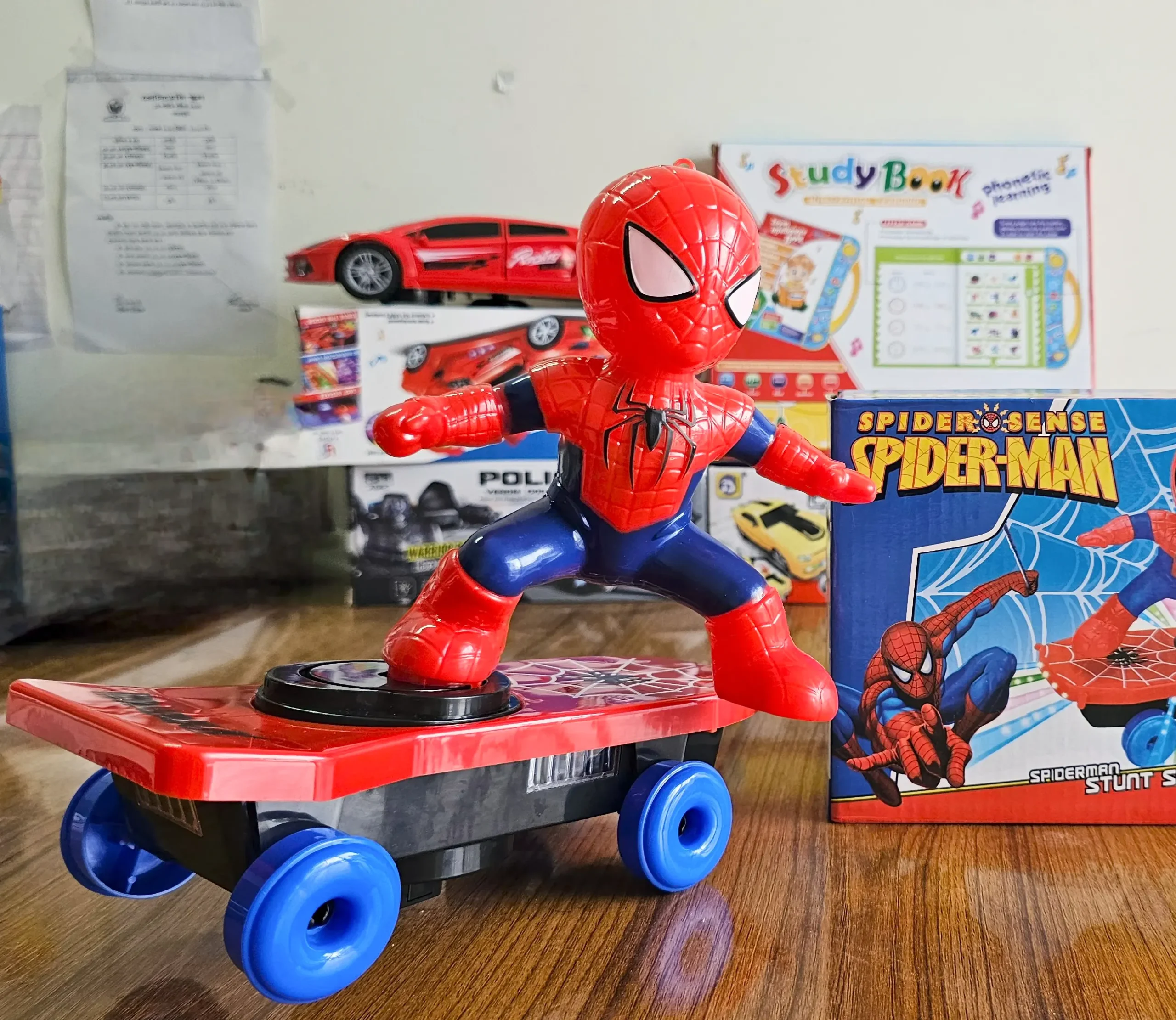 Spider-Man Stunt Skateboard Toy – 360° Spin, Colorful Lights & Self-Balancing